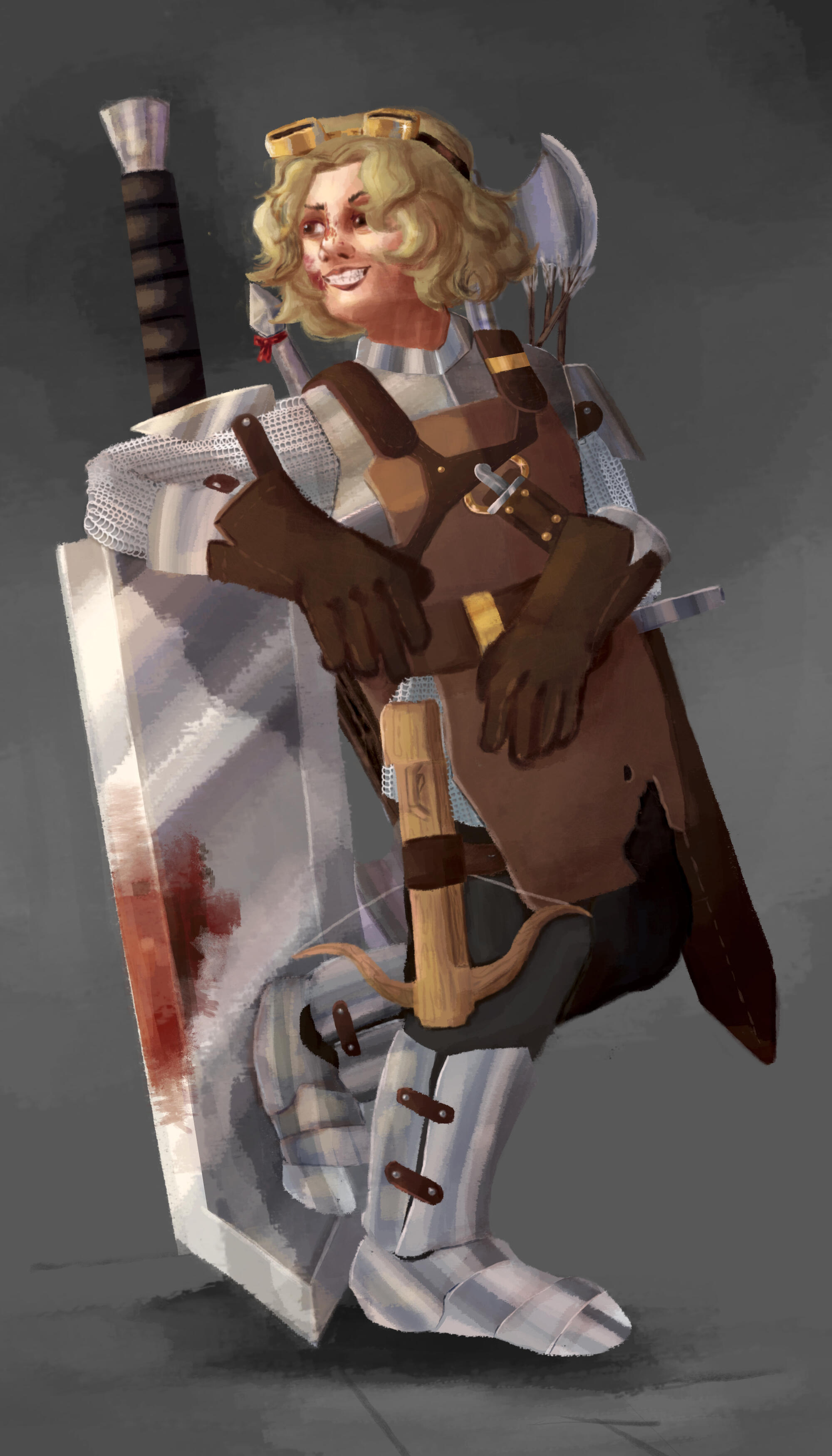 (She/her)Once a duellist, Aranna turned to monster hunting after her twin sibling was warped into a sword made of their own flesh by the White Which.She seeks out magical and powerful creatures to train against, in hopes of slaying the Witch and returning her sibling to normal someday.