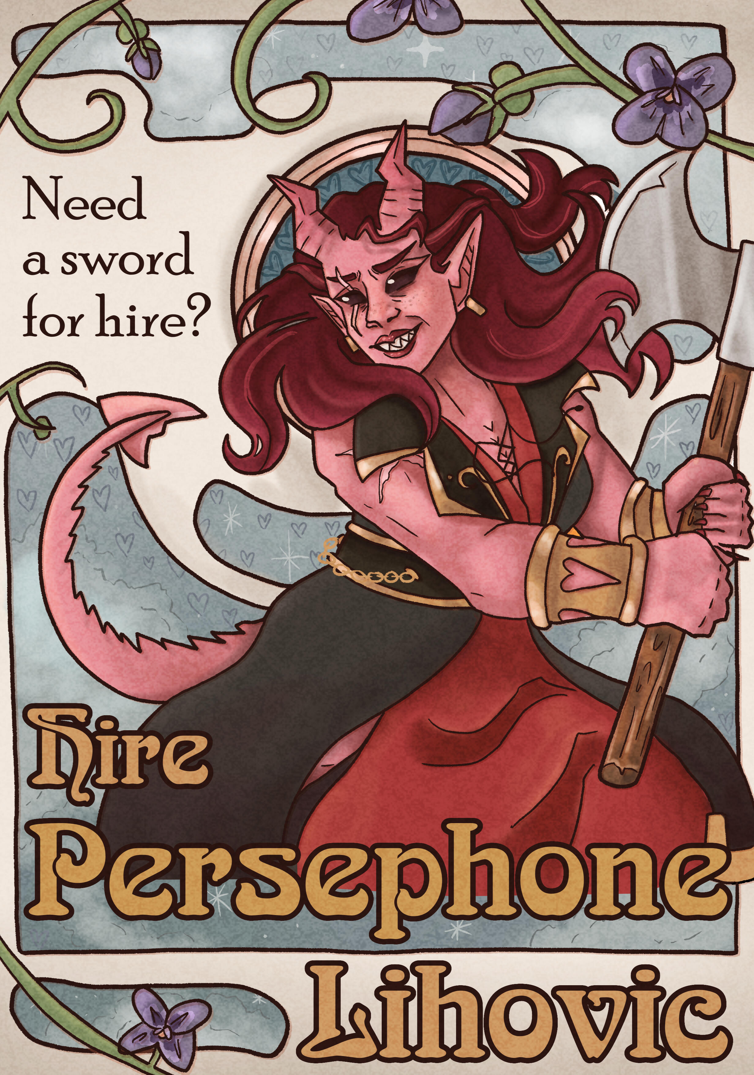 (She/her)A character that began life as a Baldur's Gate 3 character, but whom I then edited and re-wrote to play in a oneshot at my table!She's a high femme and highly flirty axe for hire, with many many half siblings, all of whom she loves dearly.Her first design is during the events of the oneshot, while the second one is from a few years later, after having become the partner of her old boss.