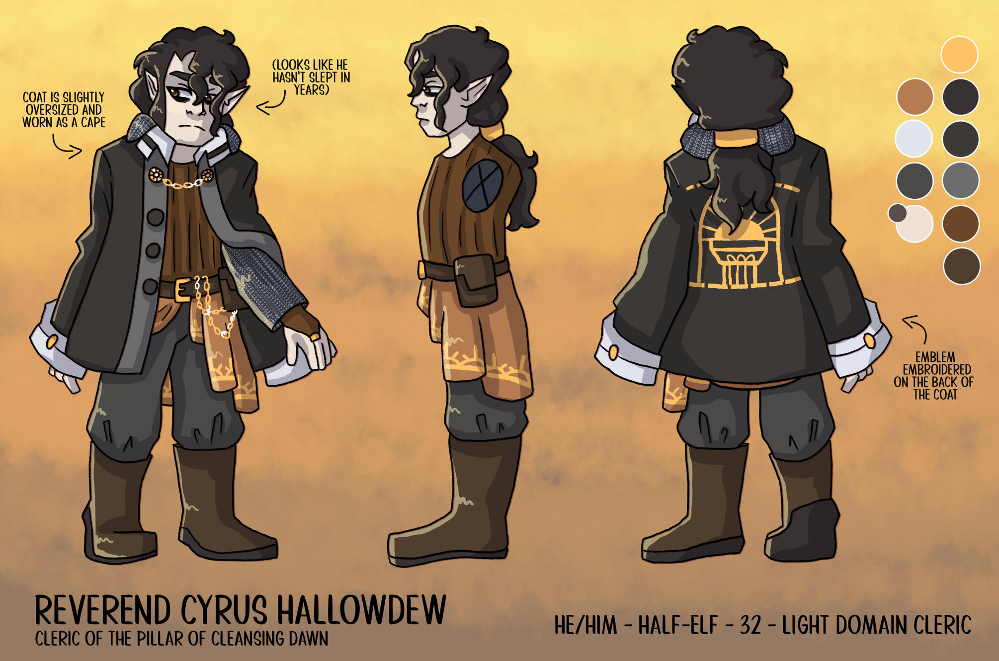 (He/him)My current DND character!The sole cleric of a minor goddess, a role which is passed down in his family.
